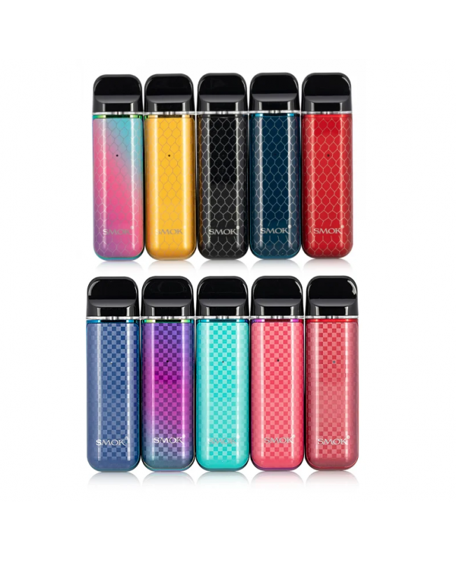 The SMOK NOVO 3 Pod System Kit takes the original SMOK NOVO and upgrades it. The SMOK NOVO 3 Kit keeps the originals elegant shape while sporting a visually striking new carbon fiber finish, spacious 800mAh battery capacity, and uses an intuitive draw-activated firing method to catalyze the vaporization of premium nicotine salts within the 2mL cartridge. Operating off a draw-activated firing system, the NOVO 3 Pod System is great for those that are on-the-go. Without any buttons, users do not have to worry about the device auto-firing and or burning out their coils within the 2mL pod. The battery life can be viewed via the LED Indicator Lights, the Novo 3 Pod System can be recharged from the bottom using the supplied USB Port and features pass through capabilities to allow the user to vape while the device is charging.